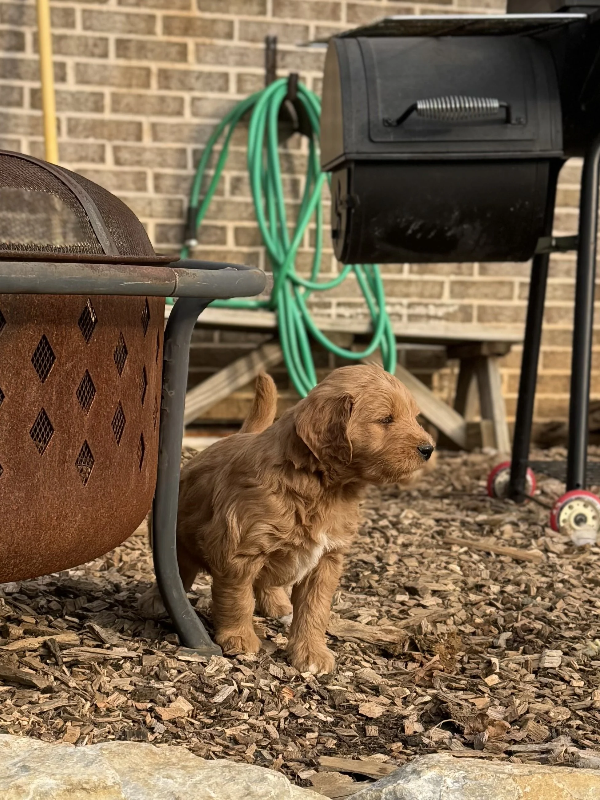 Hunter is the sweetest snuggle bug. He has the most “poodle” of the litter. He definitely takes after his sire. Hunter loves people and his siblings!